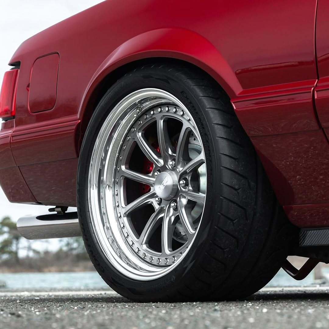 Few things look as clean as a Ruby Red (or Burgundy) Foxbody Mustang Notchback on a proper set of forged wheels. The CCW CZ10, finished in Brushed Tinted with a Polished Lip and ARP stainless hardware, captures that perfect balance of vintage Mustang attitude and modern performance precision.