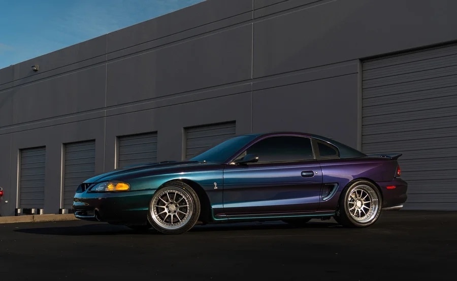 The 1996 Mystic Cobra SVT remains one of Ford’s most memorable special-edition Mustangs — a car that shimmered through shades of purple, green, and gold under sunlight. When paired with CCW D110 Forged Wheels in Gunmetal Gloss with a Polished Lip and Contrast Cut Cap, the result is a look that’s equal parts classic, aggressive, and premium.