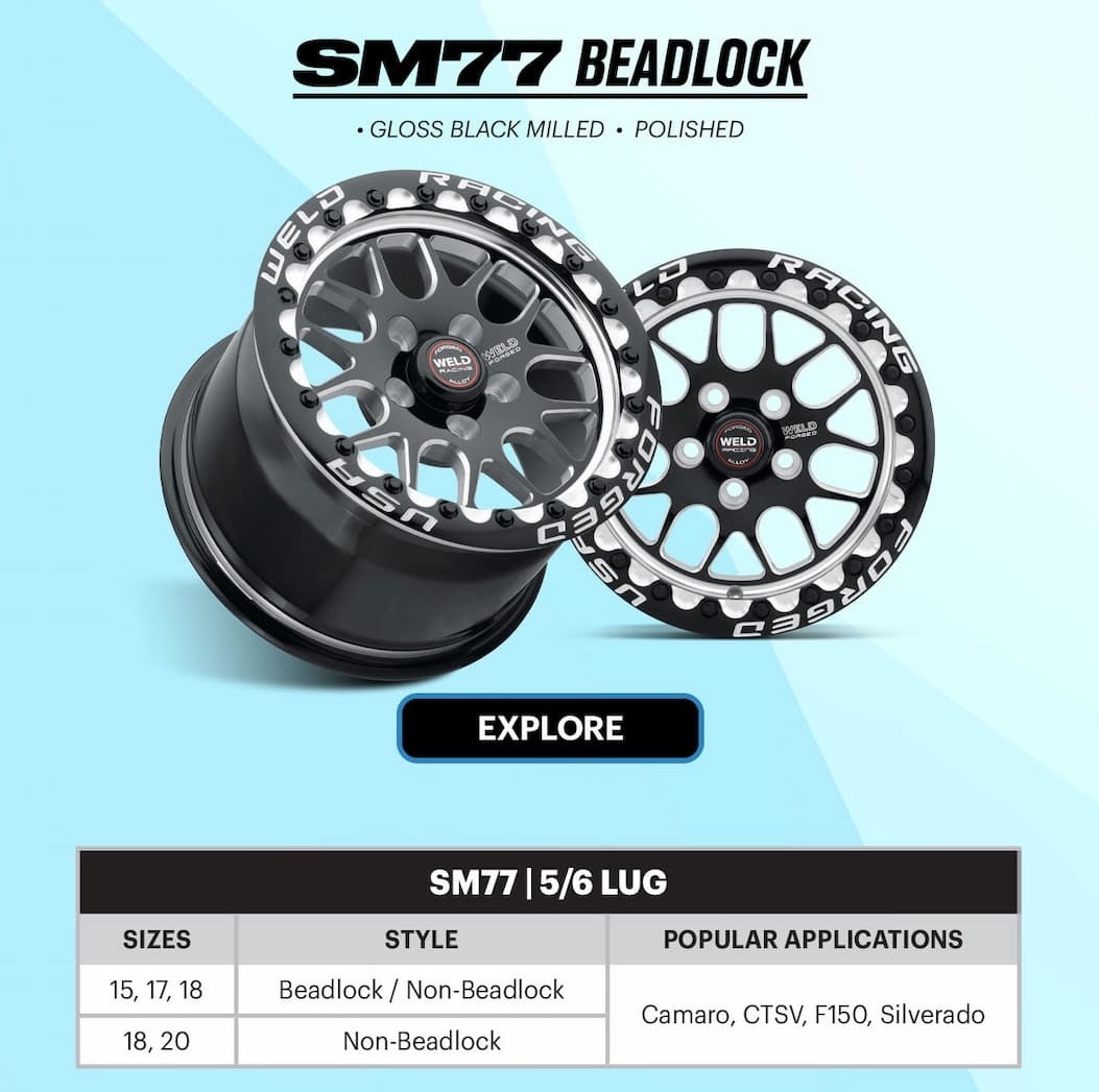 Looking for forged strength, traction that hooks, and a clean, timeless design? The WELD Racing SM Series—especially the SM71 and SM77—is a newer offering on our site and it’s over 20% off while inventory lasts. We keep popular Hellcat, Mustang, Camaro, and truck fitments in stock, so you can skip long build times and get rolling.